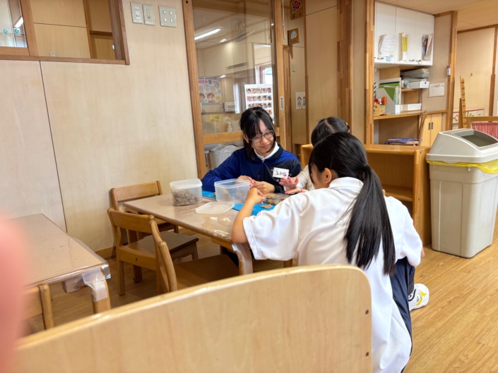 ・足をくじかないように段差が少なかったことに気づいた。よく話す子は積極的に聞き手に回り、恥ずかしがりやの子には身に着けているものを話題に話しかけると話してくれることが分かりました。