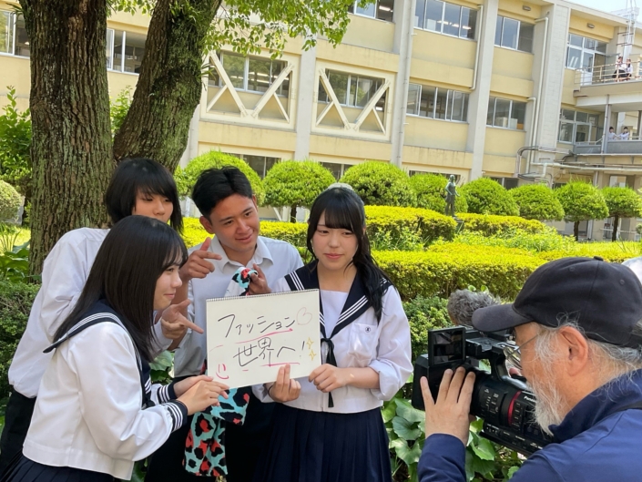 映像では、中庭で「あなたの青春を教えてください!」から始まり、地学部のプラネタリウムやファッション創造科の授業の様子はもちろん、ザ・マミィのお二人が一緒に衣装を作ったり、ランウェイに挑戦したり…楽しい場面が盛りだくさんでした!生徒同士のワイワイした雰囲気や、地域とのつながりもばっちり紹介されました。