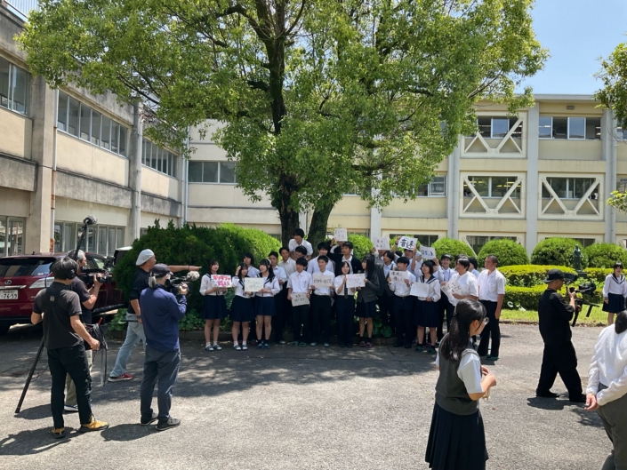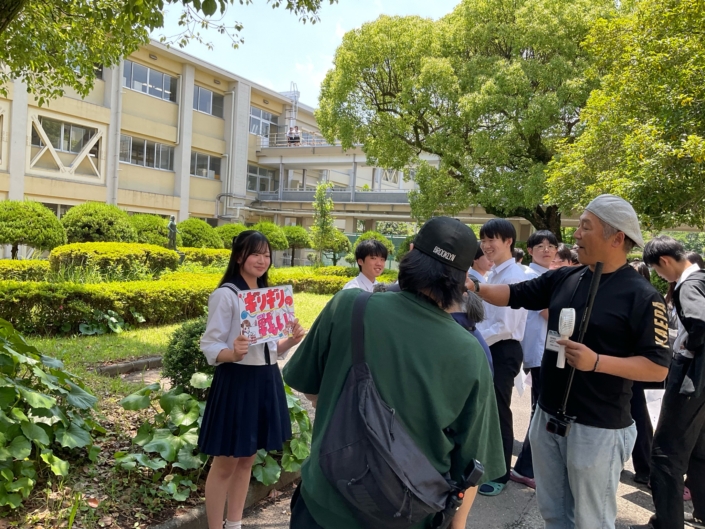 インタビューや撮影にたくさんの生徒が協力し、学校中が笑顔でいっぱいになりました。