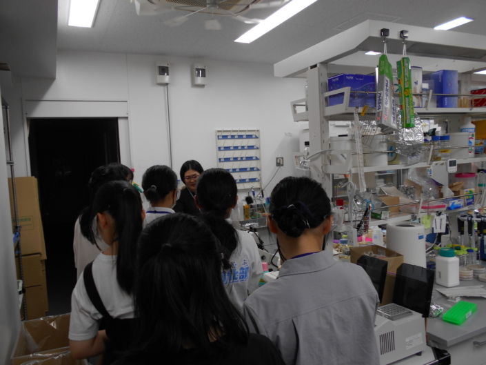 女性科学者のたまご育成プロジェクトの一環として「ラボビジ in ITbM」を開催しました。前半は、理学研究科の教授である2名の女性科学者の方からご講演をいただきました。ご自身の研究内容、高校・大学時代の過ごし方、進路選択でどのようなことを大切にしたか等、具体的なお話をしていただきました。講演後は、ITbMの施設見学をさせていただきました。大学で行われる研究がどのような過程で行われているのか、イメージすることができた貴重な機会となりました。最後は、講師の方との座談会を行い、様々な質問に丁寧に答えていただきました。アンケートには進路選択の参考になった等、多くの生徒たちが今後に役立つものだったと答えており、充実した時間を過ごすことができたようです。