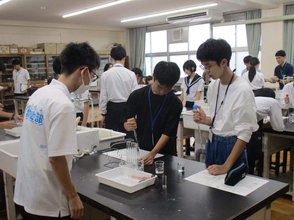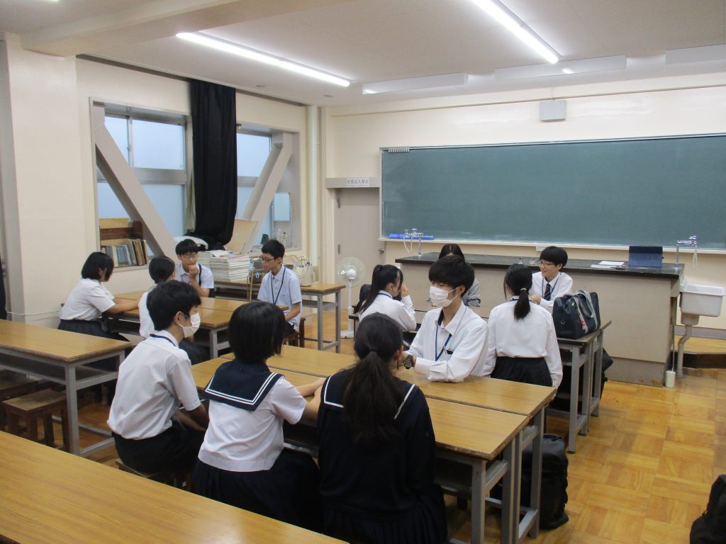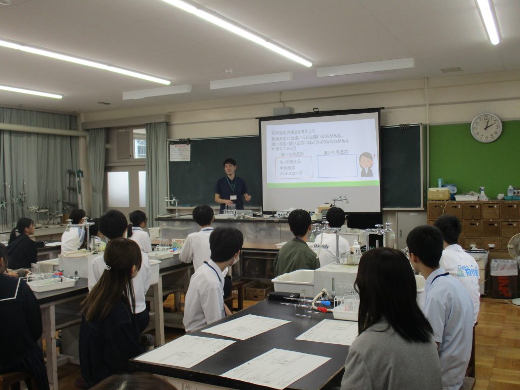 また、本校生徒や教員共々、中学生と一緒に化学実験や座談会をすることができ、楽しいひと時を過ごすことができました。