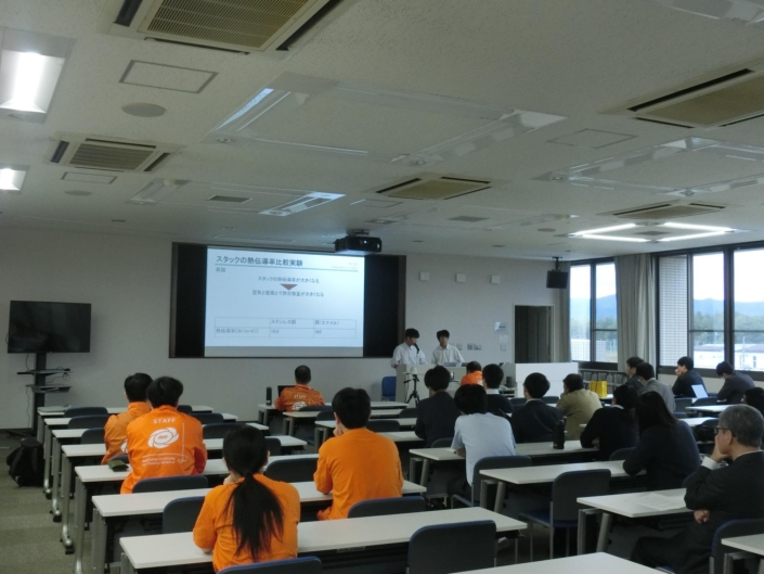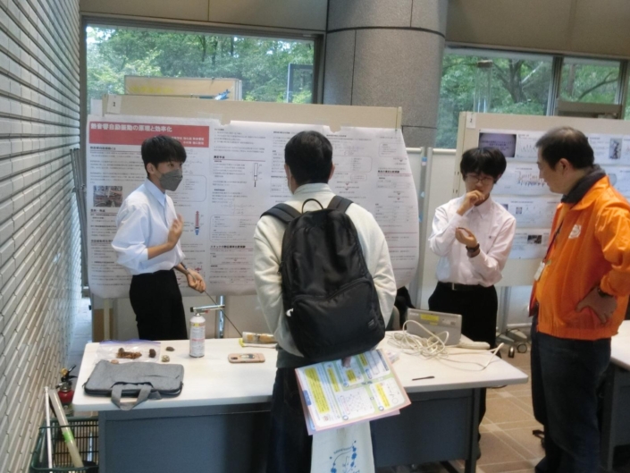 愛知県、東京都から3校(5発表)が集い、午前の部で口頭発表、午後の部でポスター発表を行いました。高校生同士での研究発表交流に加え、NIFSの研究者やオープンキャンパスの一般参加者から質問や意見をもらうことができました。研究を継続する上で有意義なフィードバックを得ることのできた一日となりました。