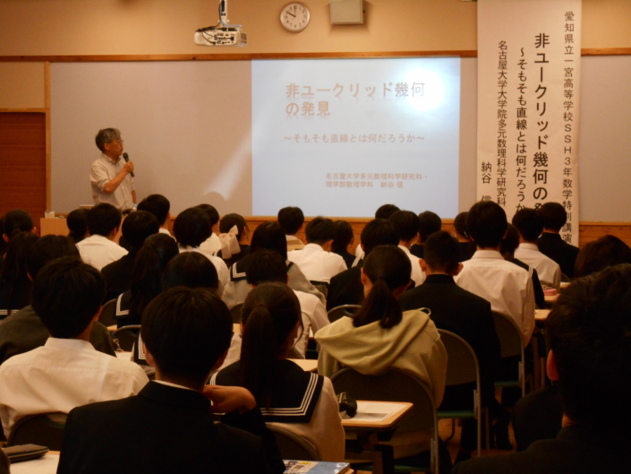 今年度のSSH数学講演会は、名古屋大学大学院 多元数理科学研究科 納谷信教授を講師にお招きし、本校の桃陵館にて実施されました。