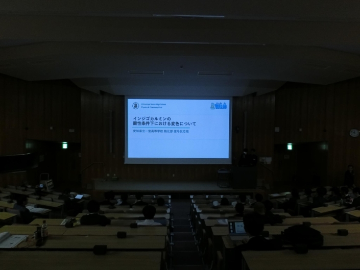 物化部4名(発表者:2年生2名、聴衆:1年生2名)は、愛知、岐阜、静岡、長野そして関東支部代表として茨城の高校7校(8発表)の集う東海地区高等学校化学研究発表交流会に参加をしました。