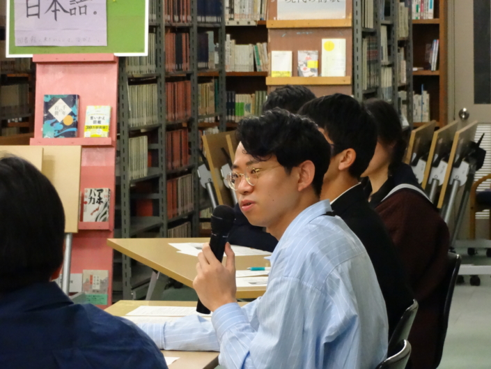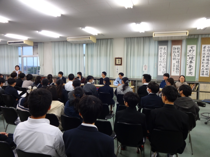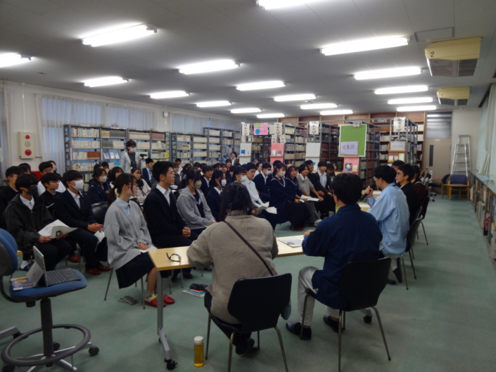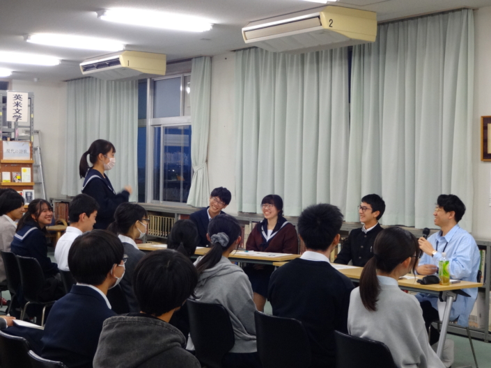 10月31日(金)に、槍高放課後トークを開催しました。通算8回目となりますが、今回はこれまでとは趣向を変えて、講演会ではなく、事前に集めた質問に講師が回答する形で進めました。講師は、YouTube、Podcastチャンネル「ゆる言語学ラジオ」を主催されている水野太貴さん。「ことば」に興味を抱く在校生や卒業生、教員が参加し、「方言はどうして生まれるのか」「人工言語をどう思うか」「世界統一言語成立の可能性はあるか」等の、ことばにまつわる少しマニアックな質問に的確に答えられました。参加者は、普段何気なく使っていることばについて、見識を広めることができたと思います。