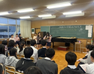 留学生たちは、理科、数学、英語、体育などの授業に参加しました。英語の授業では、本校生徒が日本文化を英語で紹介するプレゼンテーションを行い、留学生からも英語での課題研究発表がありました。互いに質問し合いながら発表を楽しむ姿が見られ、活発な国際交流の時間となりました。