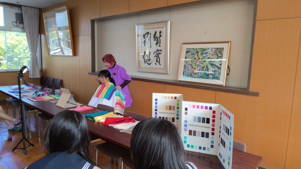 今回、外部講師による講義・実習は、パーソナルカラーについての講習・実演をしていただきました。