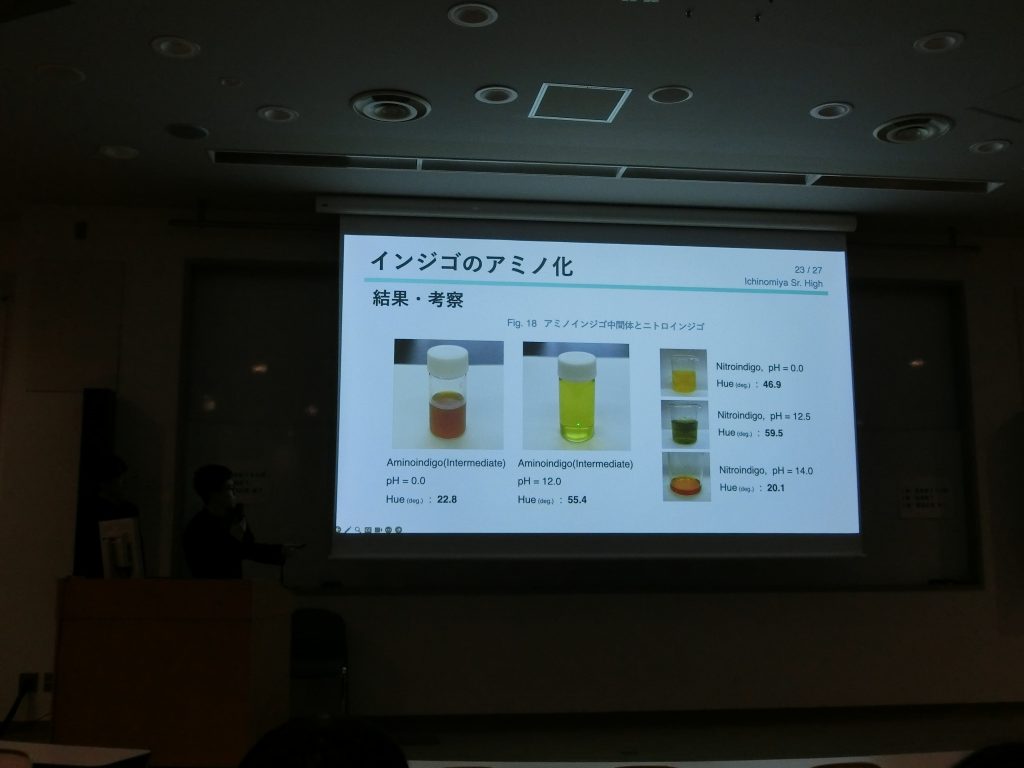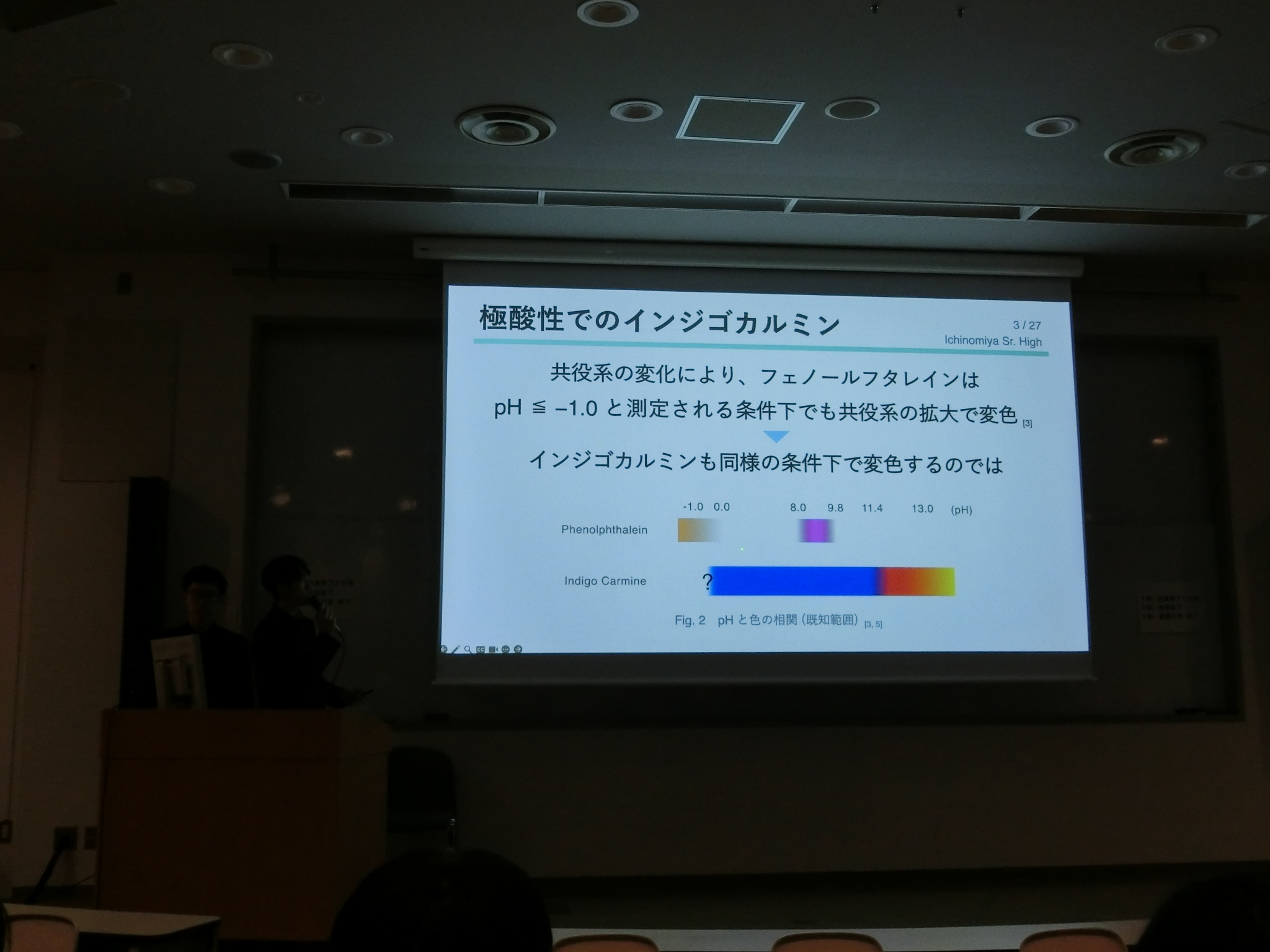 お知らせ/物化部 第43回化学クラブ研究発表会エキシビション発表 2026年3月30日 日時 令和8年3月26日(木) 9:45~16:00 会場 東京都立大学南大沢キャンパス 主催 日本化学会関東支部 第43回化学クラブ研究発表会エキシビション発表に、物化部の信号反応班(2年生2名)「インジゴ誘導体の色と構造」が参加をしました。関東の中高校生が集い、口頭発表21テーマ、ポスター発表27テーマの発表がありました。 数多くのテーマに触れ、活発な質疑応答を行うことができ、有意義な機会となりました。 CIMG2920ダウンロード