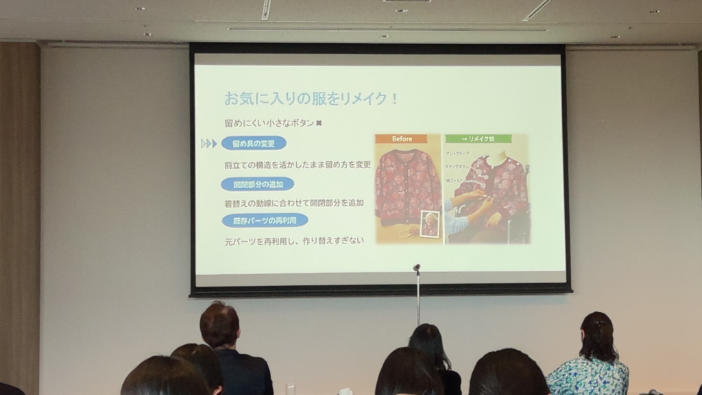 ファッション創造科で行っているリメイクで、お年寄りの想い出の服を生まれ変わらせようという提案です。