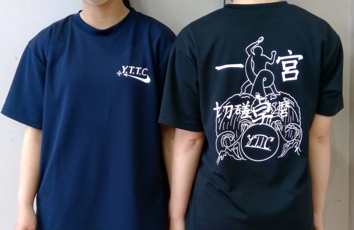 卓球部女子は、県大会出場を目標にして、一生懸命練習をしています。火曜日から土曜日が活動日です。部員がそれぞれの課題を克服するために、自分たちで練習メニューを考えて練習に励んでいます。画像は、毎年作っている卓球部オリジナルのTシャツです。