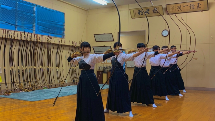 弓道部は、毎年20名程度が入部する人数の多い部活です。ほとんどの人が初心者で入部しますが、男女も普通科もファッション創造科も、皆一緒に練習をし、1年生のうちに県大会や東海大会に出場する実力をつける人もいます。練習は原則として平日週4日、休日は土曜日の半日(大会や練習試合を除く)です。一緒に文武両道でカッコいい高校生活を送りませんか?