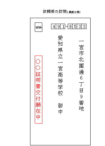 返信先の住所が分かるものを添付してください。調査書・成績証明書・単位修得証明書のいずれかもあわせて依頼する場合は、各証明書の送料・簡易書留代も含めた切手を添付してください。